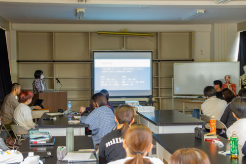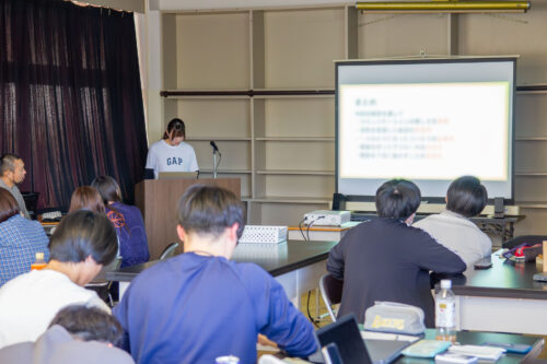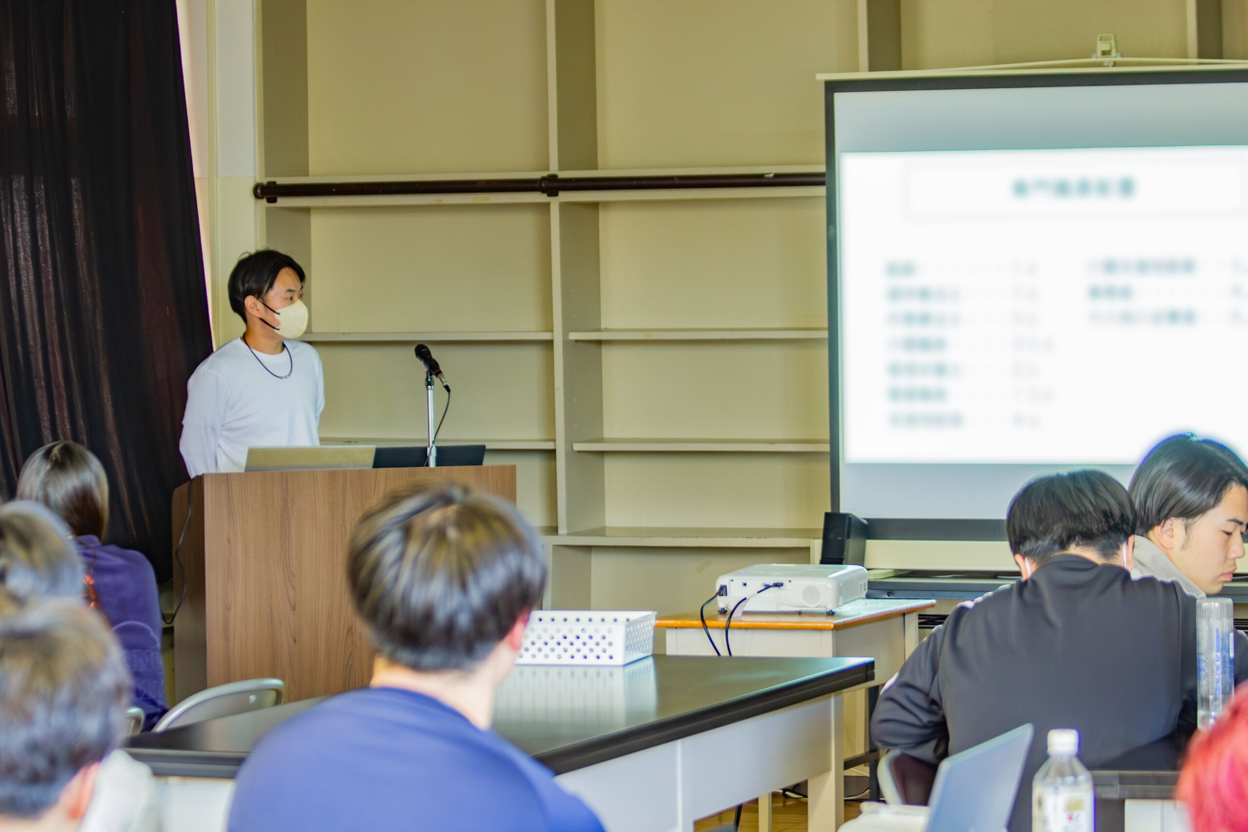 発表の中では、内容のまとめ方に工夫が必要だと感じる部分もあり、教員からの指摘や、多くの質問が飛ぶ場面もありました。しかし、それもまた初めてだからこその学び。会場には真剣に耳を傾ける仲間の姿があり、緊張しながらも一生懸命に発表を終えた学生たちの表情には、少しの安堵と大きな成長がにじんでいました。